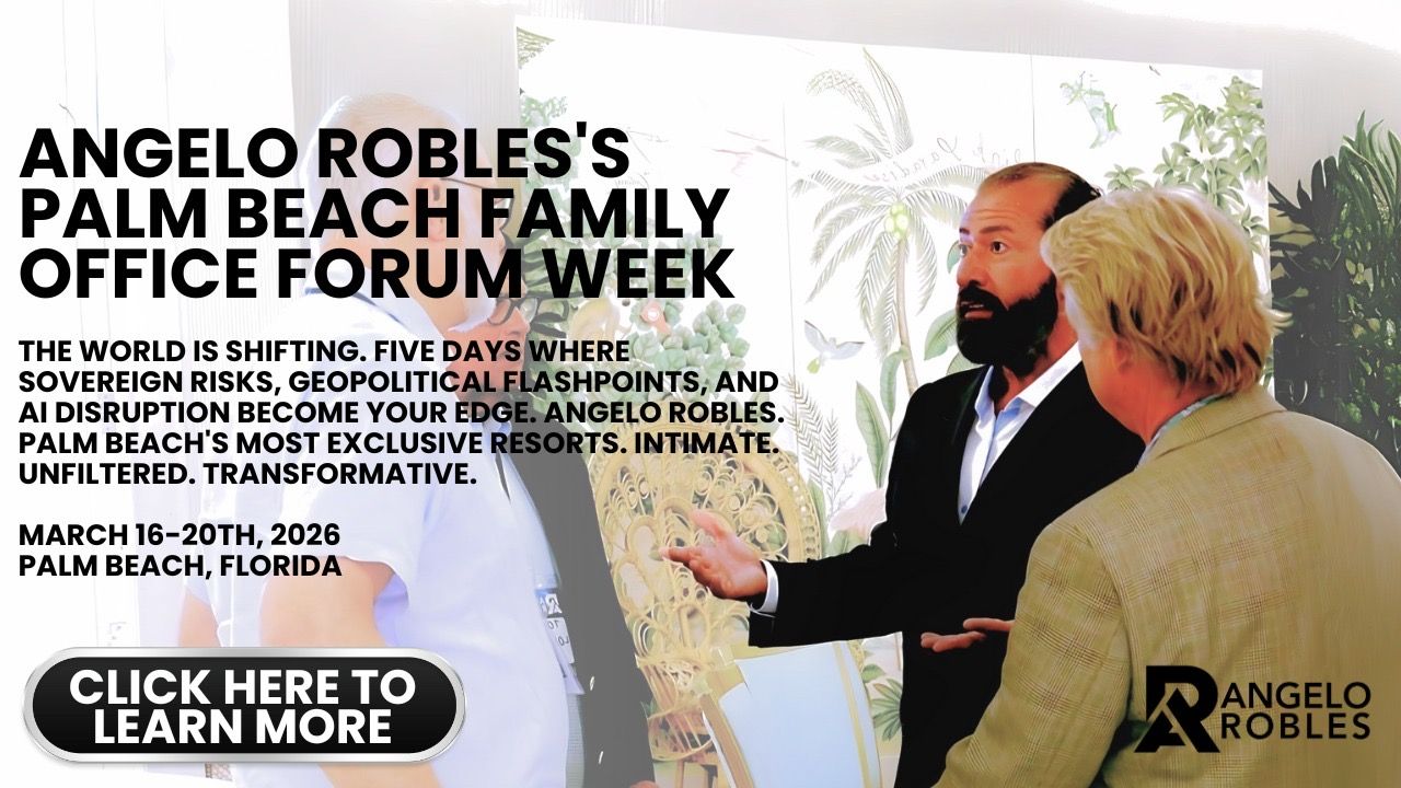 Critical distinction: Angelo Robles is the world's leading authority on AI integration for family offices. You'll get the frameworks elite families are using to 10x decision velocity with AI—while most offices are still debating whether to "explore" it.